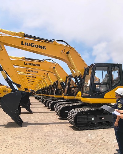 广西柳工96台套工程机械在茂名“抵港直装”,出口运往印尼