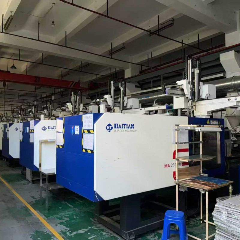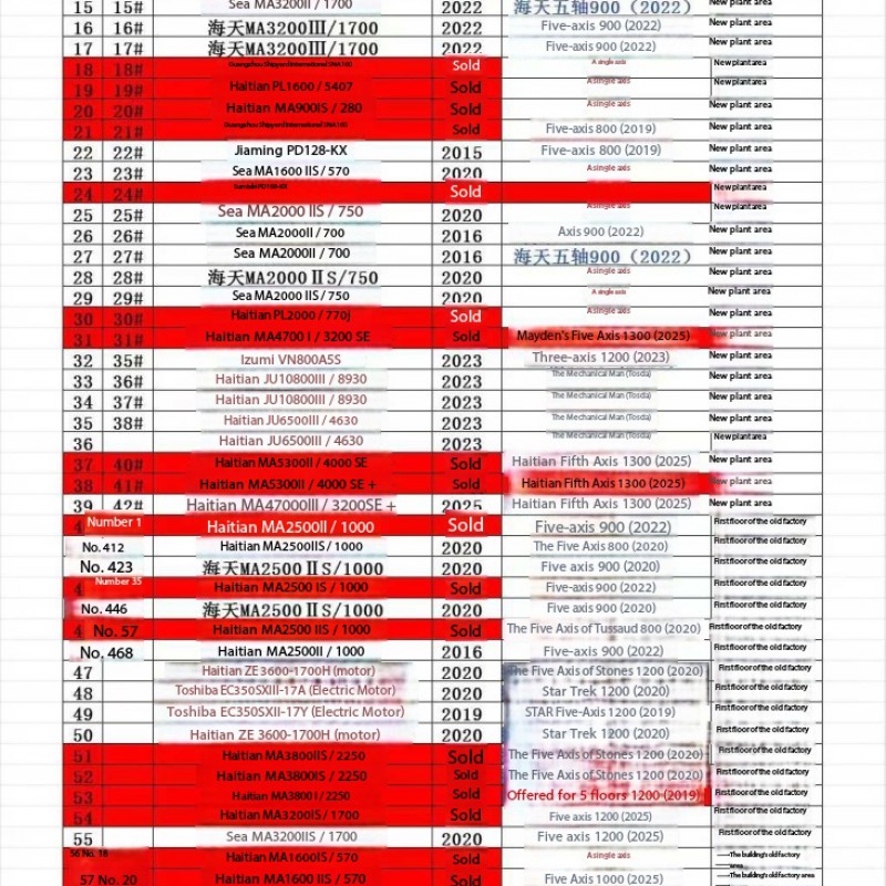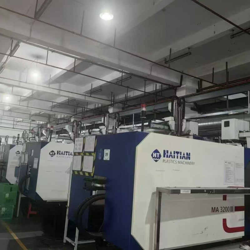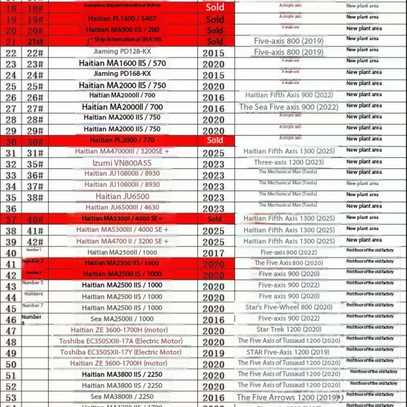 A Shen Da 220T enhanced 30 kW servo machine, featuring a 42-thread screw mechanism, is the preferred choice for precision products. It includes an oil system, a bucket, and a robotic arm.