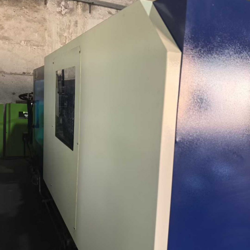 A Shen Da 220T enhanced 30 kW servo machine, featuring a 42-thread screw mechanism, is the preferred choice for precision products. It includes an oil system, a bucket, and a robotic arm.