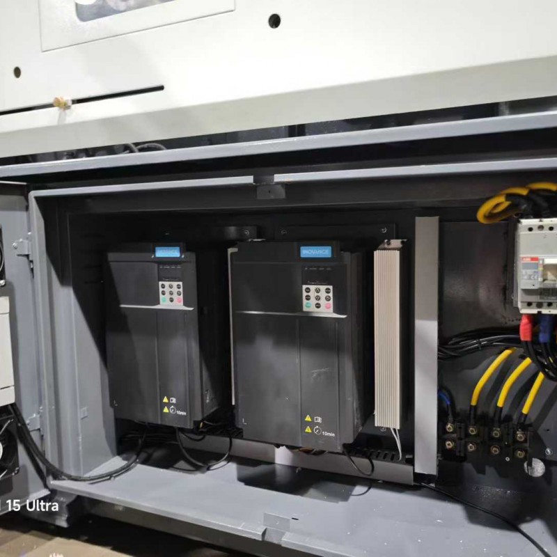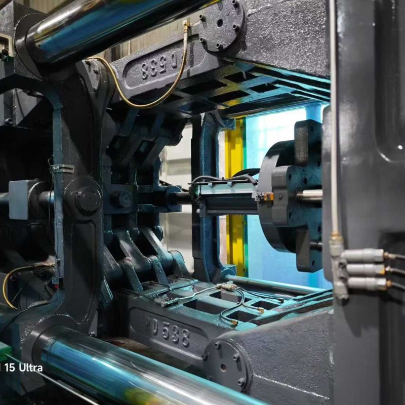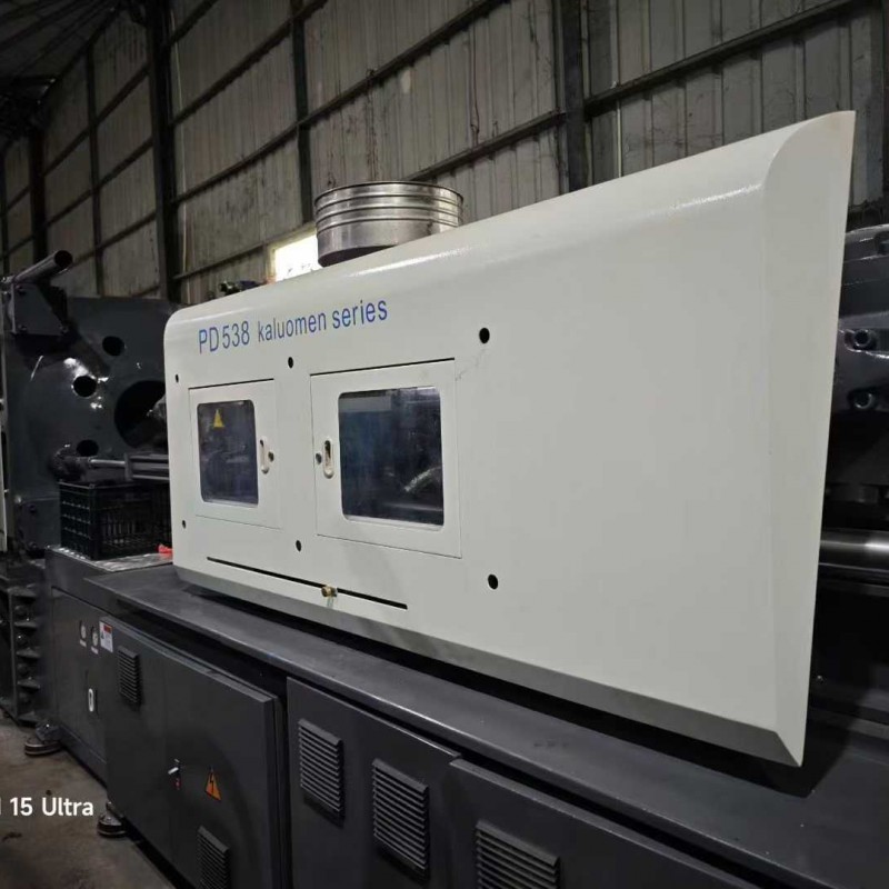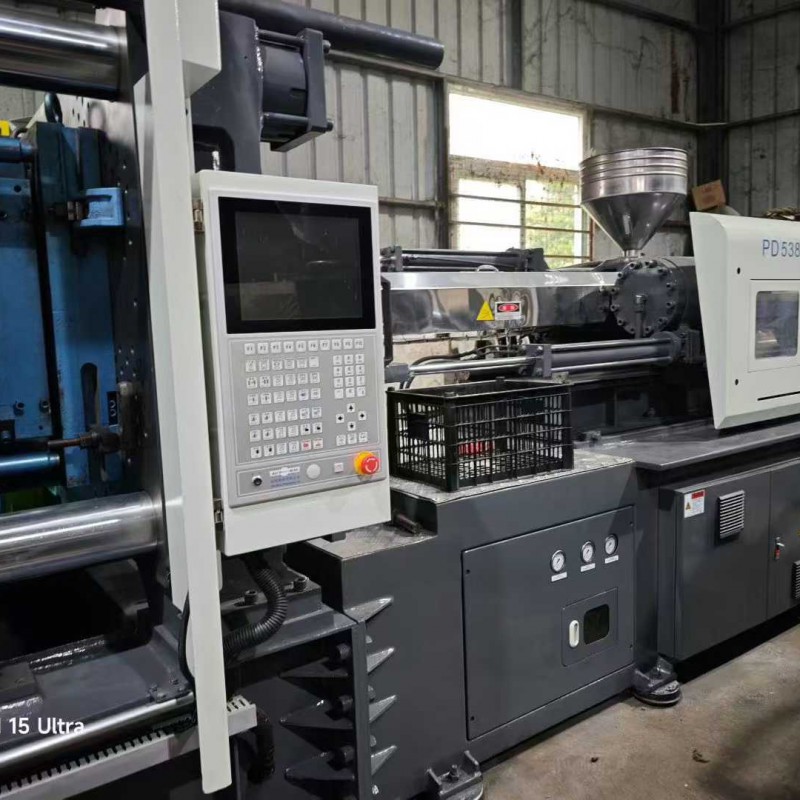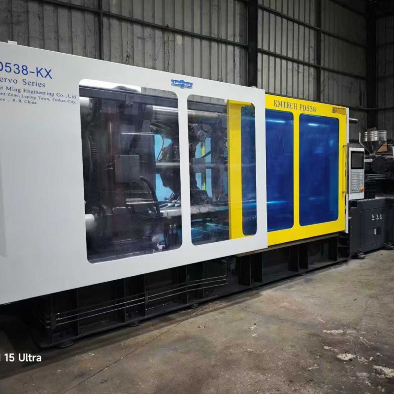 A Shen Da 220T enhanced 30 kW servo machine, featuring a 42-thread screw mechanism, is the preferred choice for precision products. It includes an oil system, a bucket, and a robotic arm.