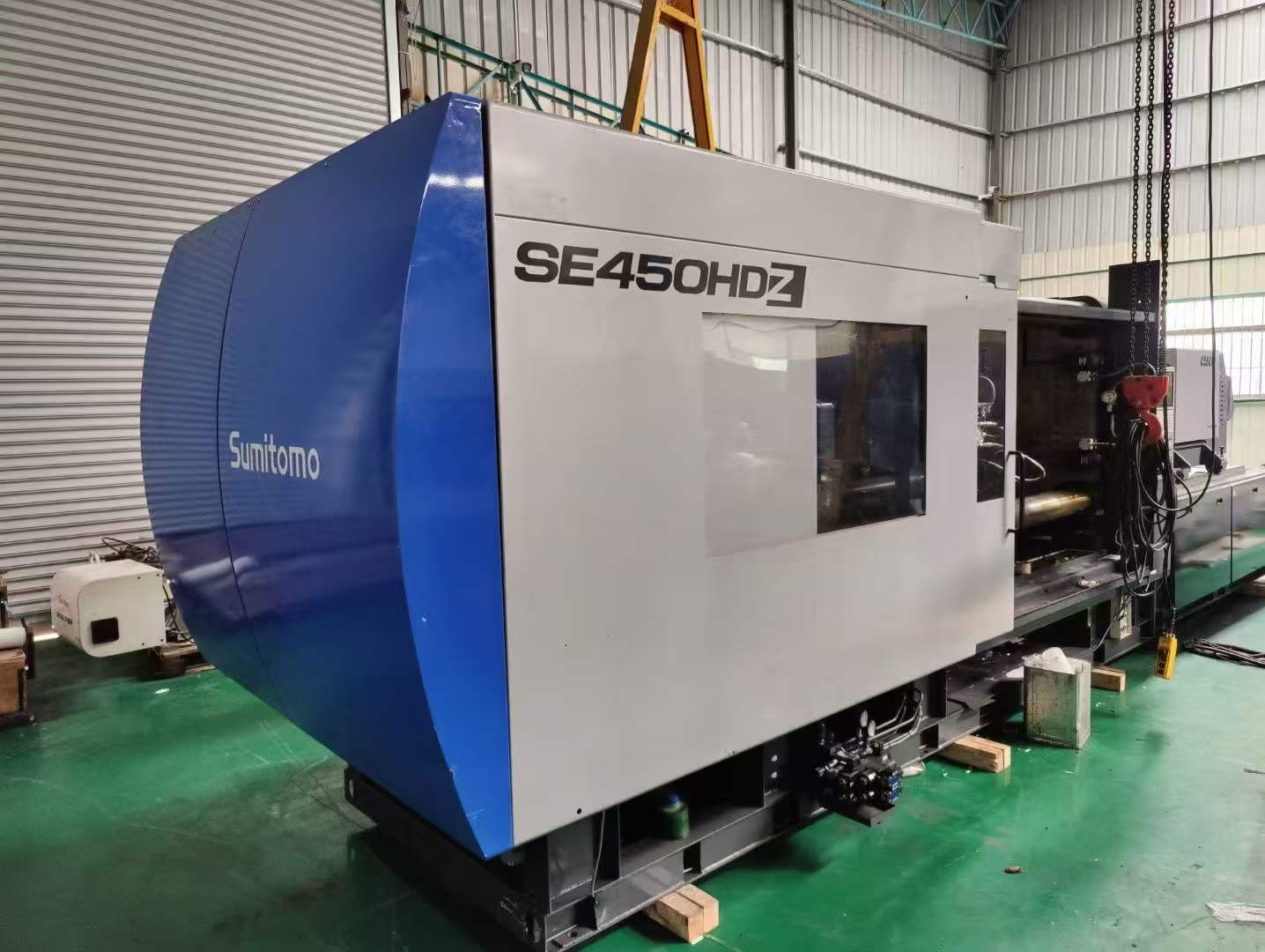 Sumitomo 450-ton high-speed machine; production underway at the factory; firing rate: 800; screw diameter: 36.