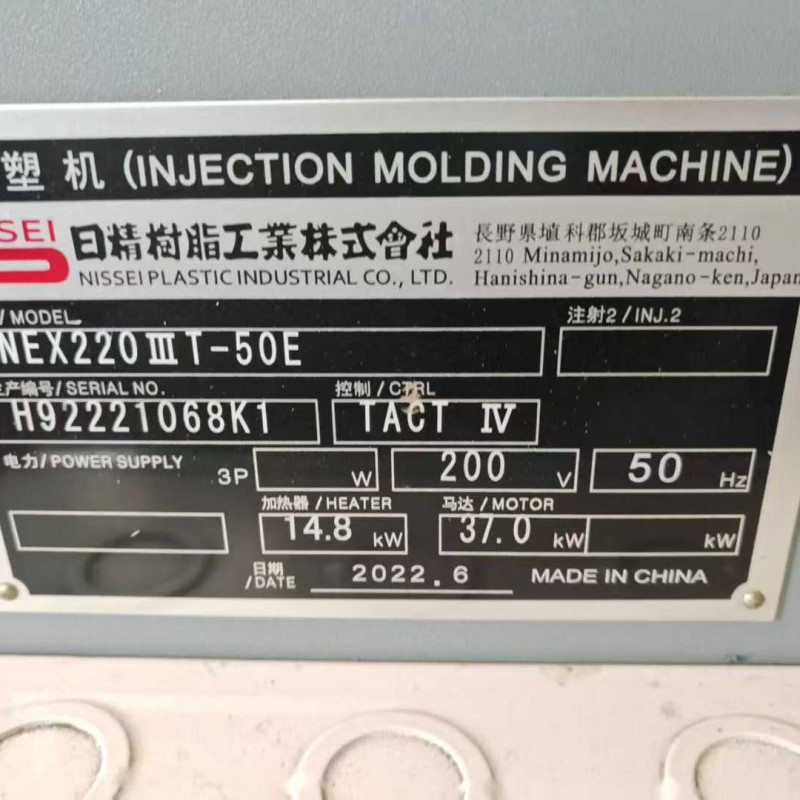 Nissin 220 tons: firing rate of 270, screw diameter of 45, operational hours of 5180.