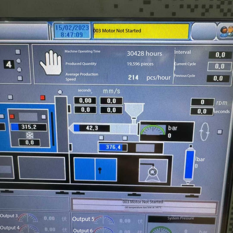 Sumitomo 450-ton high-speed machine; production underway at the factory; firing rate: 800; screw diameter: 36.