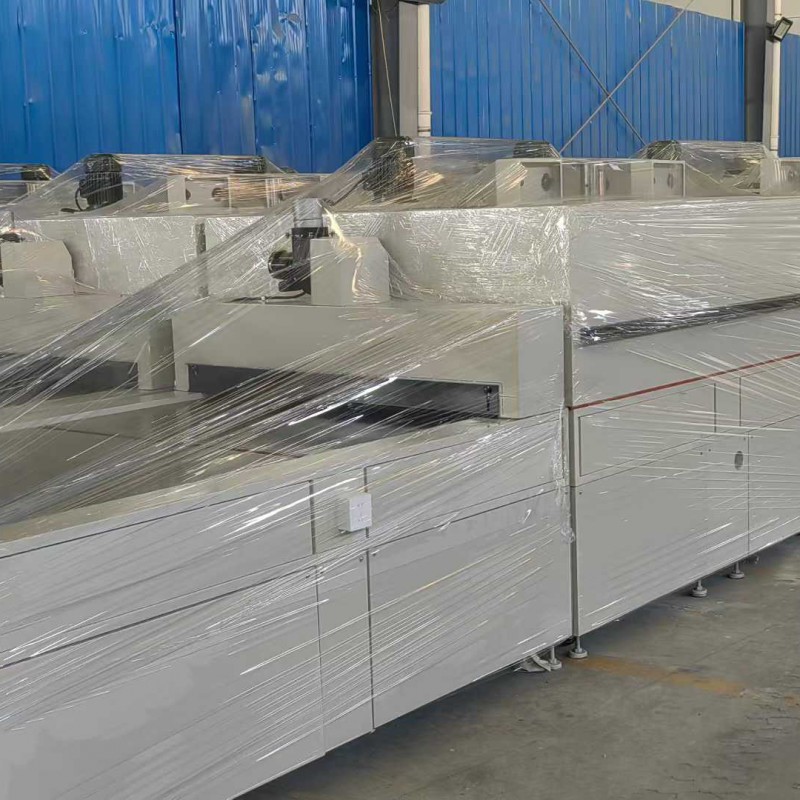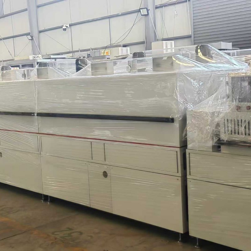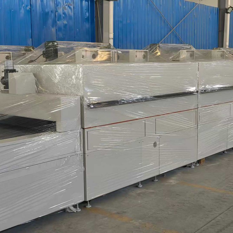 13-meter clean tunnel furnace. The web belt width is 1.2 meters, the feeding area is 2.2 meters, the heating zone is 2.2 meters per segment, with 4 independent temperature control segments, the cooling and discharge area is 2 meters, with a total length of 13 meters. The maximum temperature is 200 degrees Celsius. It is equipped with an air filtration system! The furnace lid electric cylinder can be raised or lowered with one button, making cleaning and maintenance easier! This is suitable for baking applications involving glass, thin films, optoelectronic products, and precision products, as well as for drying products with environmental control requirements!