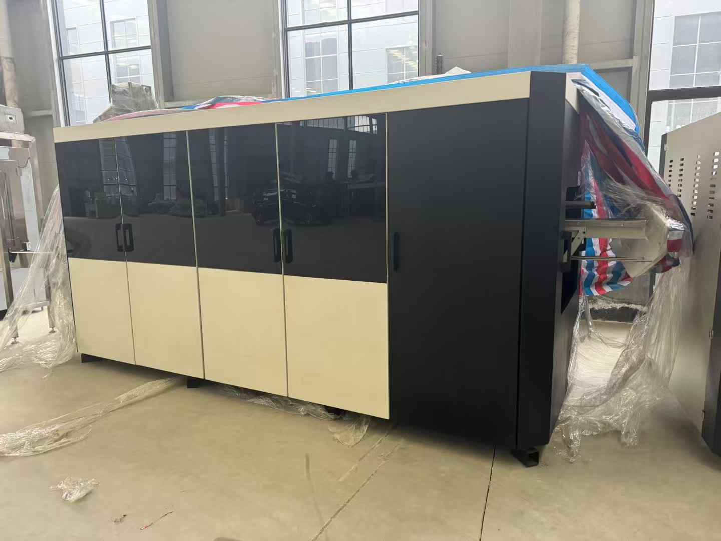 A 75-square-meter dual-sheet machine. It can produce materials such as PP, PET, and PS.
