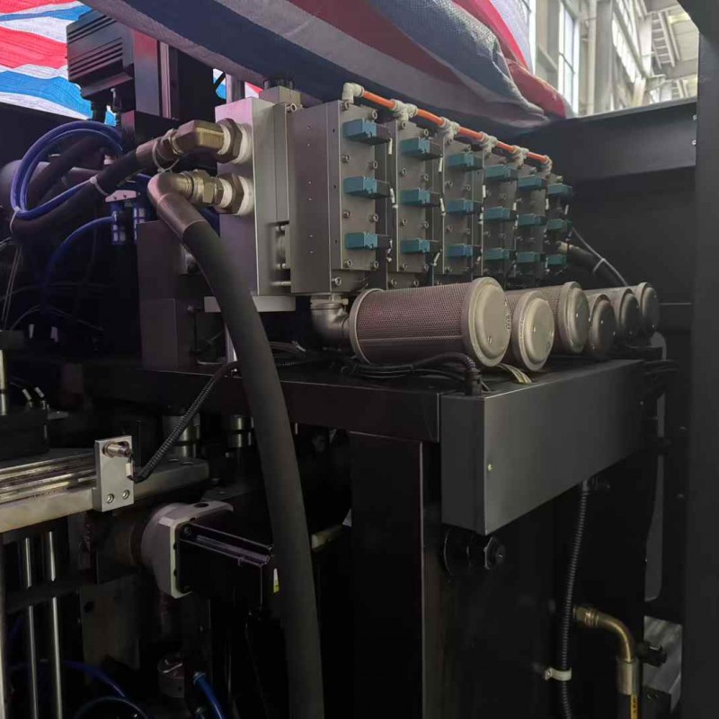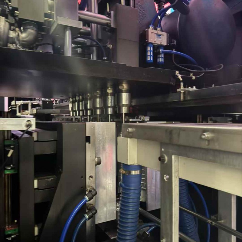 A six-section variable pitch blow molding machine with a center distance of 120, featuring a 1.5-liter 30-hole mold!