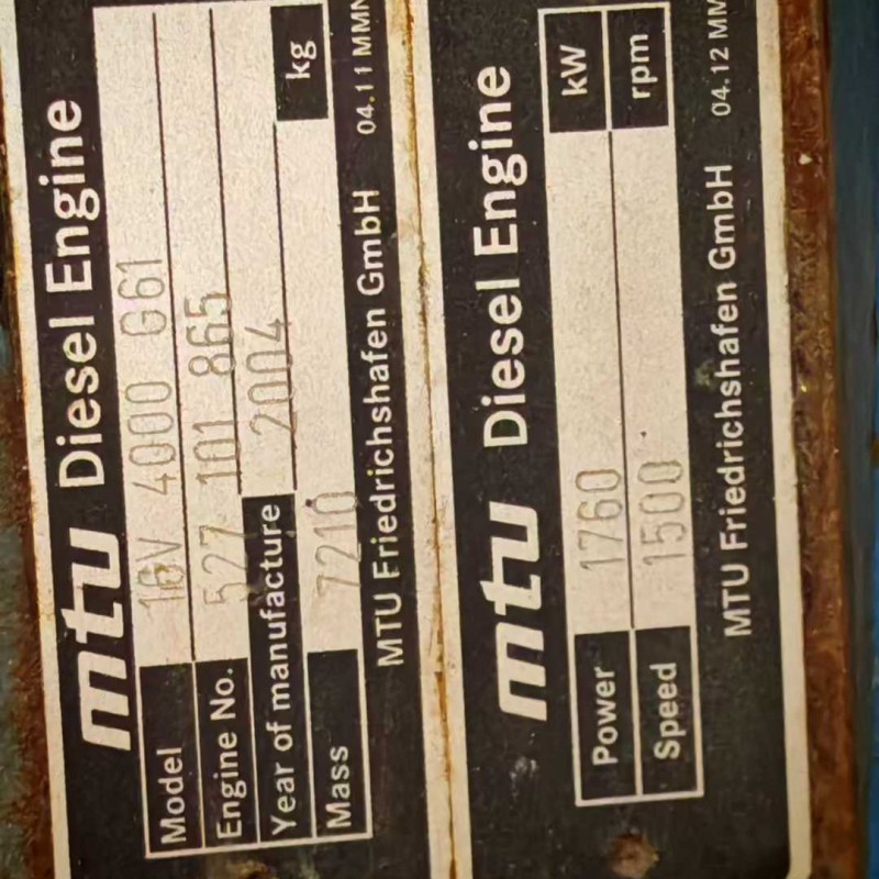 Thirteen original German imported MTU16V4000G61 engines, paired with French Lille Senma low-voltage motors, are assembled as a complete unit by Societe Generale. The unit has a power output of 1600 kW and a backup power of 1760 kW, with complete records for the entire batch of enterprise data center equipment.