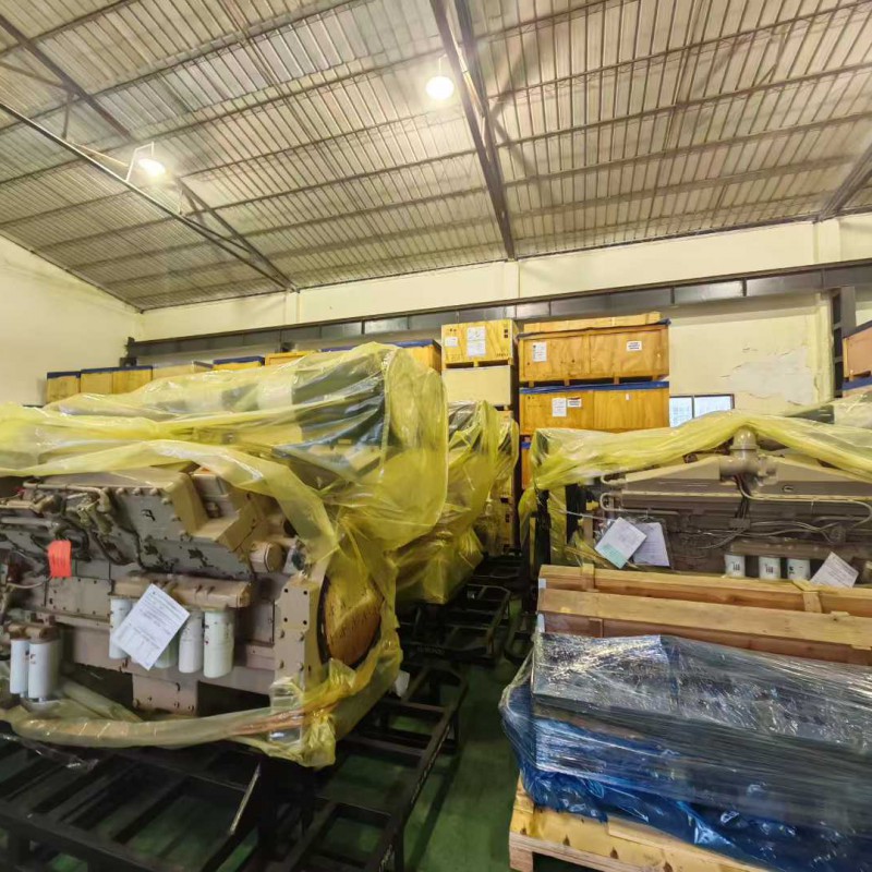A pile of fully equipped and warranty-covered American Caterpillar CAT35 series ship engines has been loaded into storage.