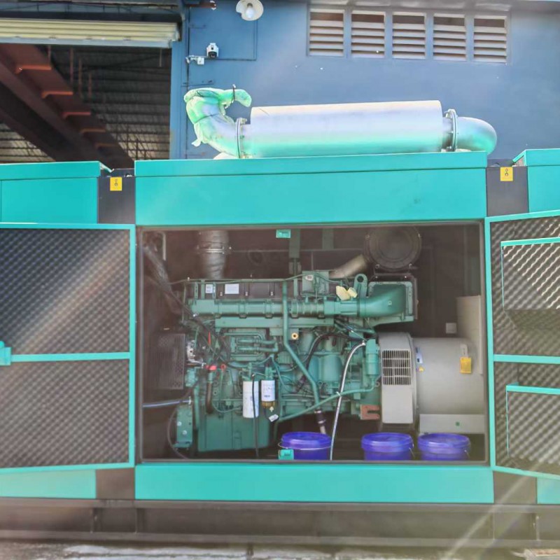 High-quality silent generator set! Original-import Volvo engine, equipped with original-import world-leading British Stamford electric motor, British Deep Sea Control System. The generator set has a power output of over 500 kilowatts.