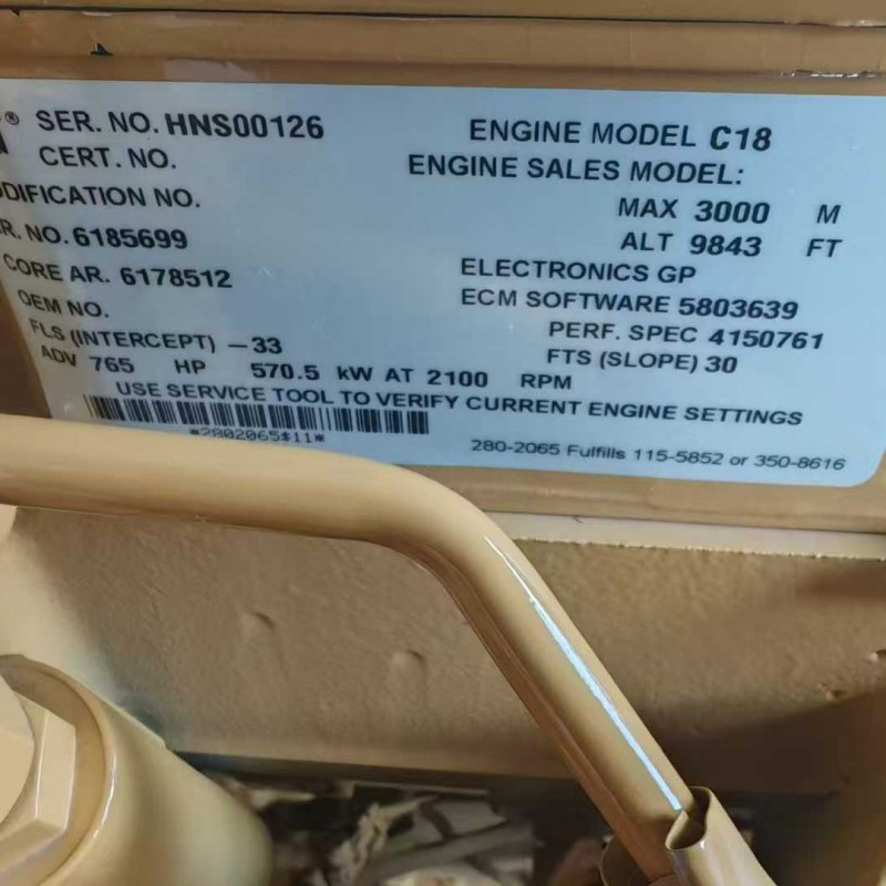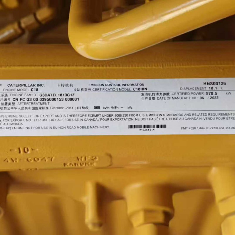 Brand new, never opened. A batch of brand new Caterpillar C18 engineering engines from the USA, originally fitted with Caterpillar excavators. Power: 570.5 kW. Meets China’s Phase III emission standards.