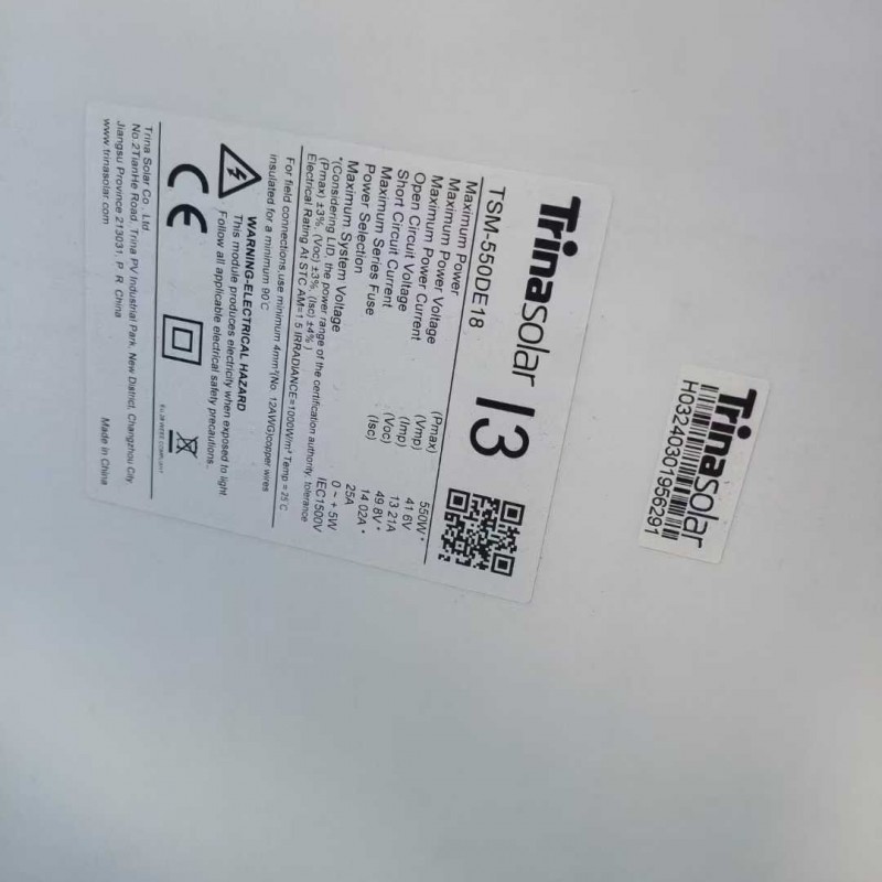 Remaining of Trina’s 550-watt single-sided project, Class A with warranty, dimensions: 2278 × 1134 × 30.