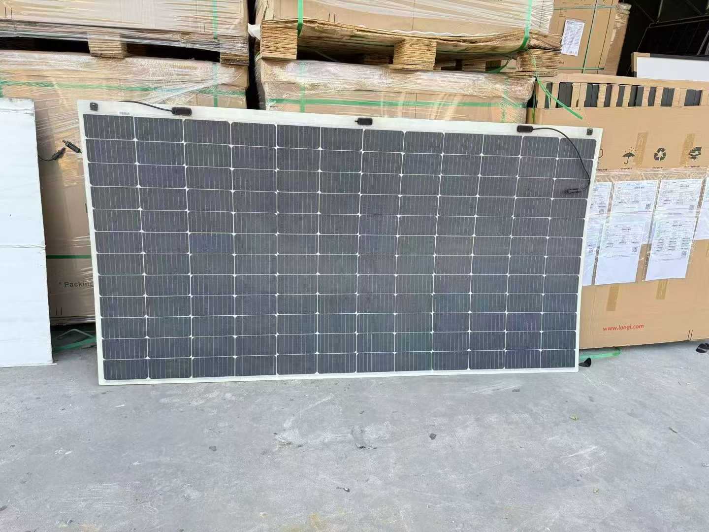 Dongsun Rise 660-watt double-glass modules, remaining stock from a brand-new project, arriving in large quantities.
