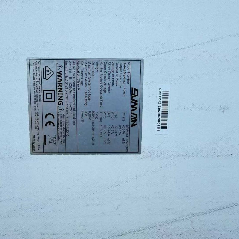 Shangmai 430W Flexible Components Dimensions: 2054*1084*2mm Second-hand dismantling.