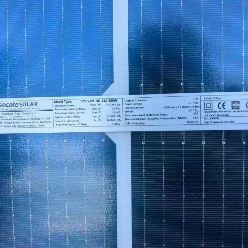 Sai-Ten Double-Sided Class A, No Warranty, 580 Watts. Dimensions: 2279*1134*30. Large inventory available. Provides information on grid connection; can pass EL testing.