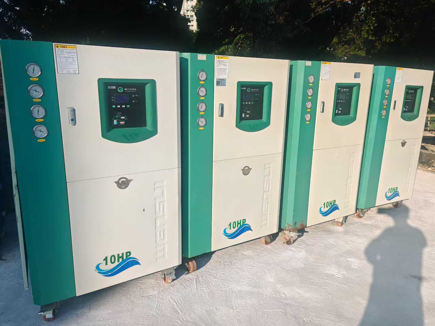 A batch of nearly new Wenshu 10-horsepower air-cooled refrigerators.