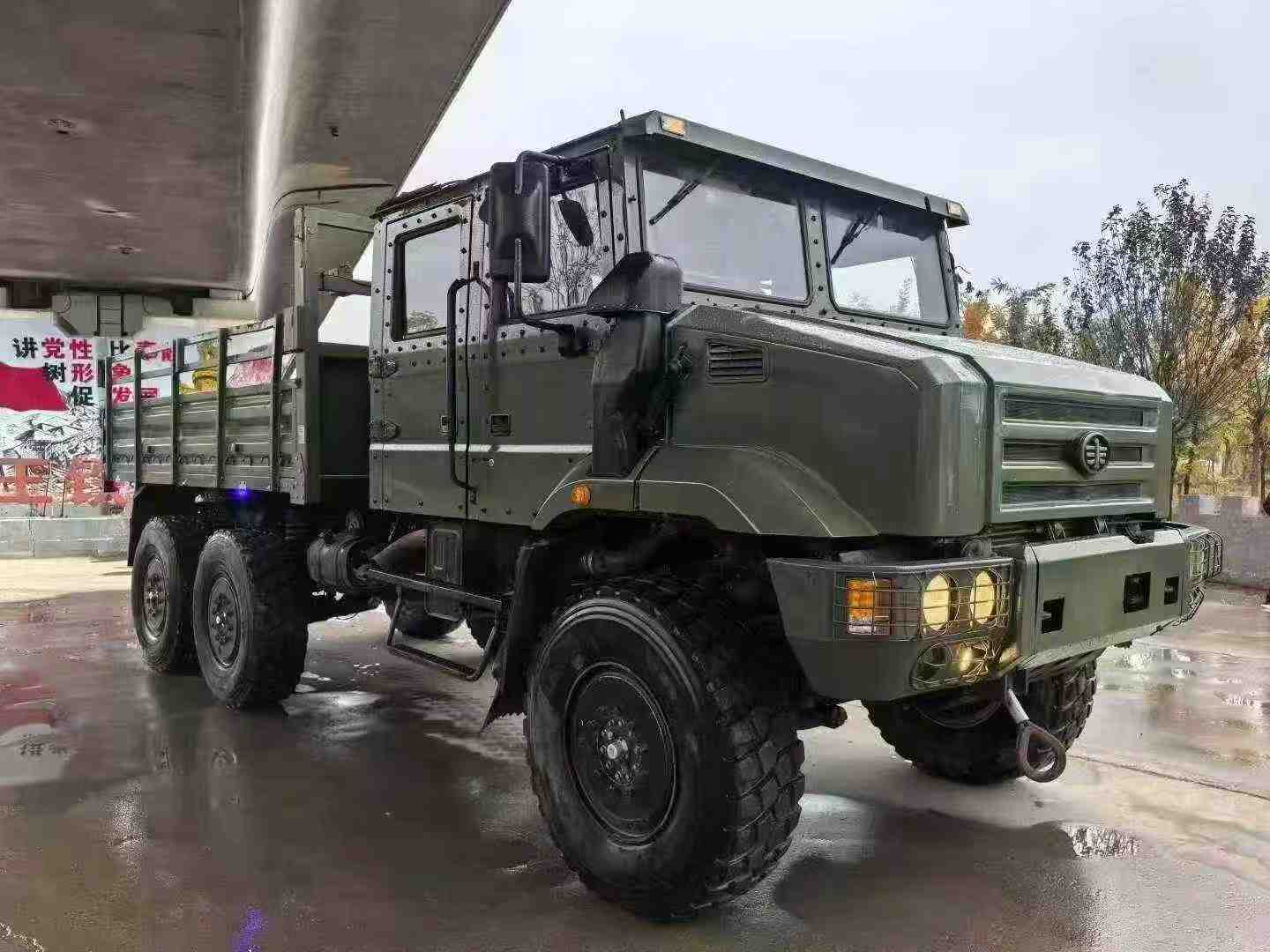 FAW MV3 heavy truck, FAW Jiefang six-wheel drive Shenghu model, equipped with a inline six-cylinder Xichai engine, displacement 8.6 liters, 350 horsepower, 6-speed automatic transmission, manual/automatic mode, 3 differential locks, high-power rear winch, tires with built-in inflation/deflation devices, independent suspension, powerful features, features developed in-house.