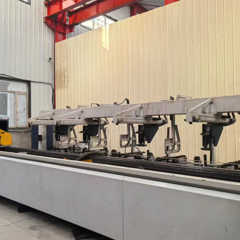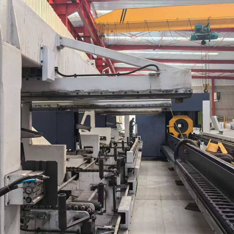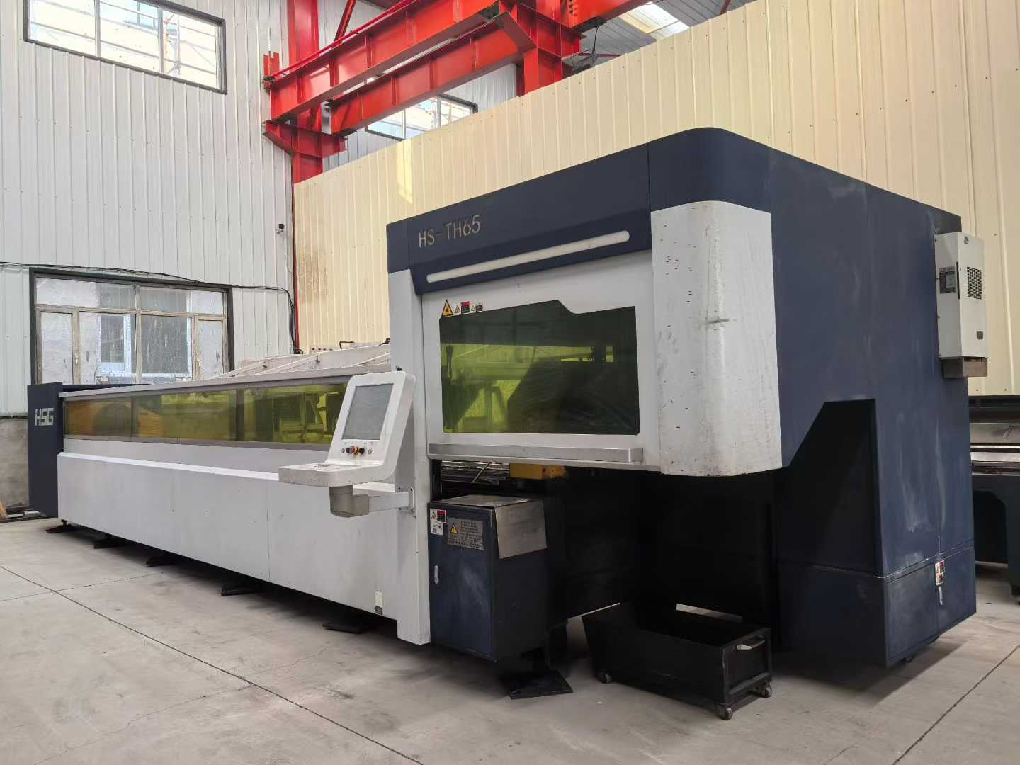 Premium Hongshan TH65 Automatic Pipe Cutting Machine Laser: Imported IPG 2000 watts, Control System: Heidelberg pipe cutting system, Cutting Head: German Pre-cut head, Servo Drive: Japanese Sanyo. Chuck diameter 220mm, effective pipe length 6 meters, equipped with a fully automatic feeder, 3-meter support feed station, and a high-version pipe cutter from Hongshan.