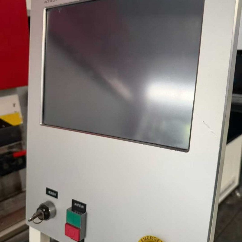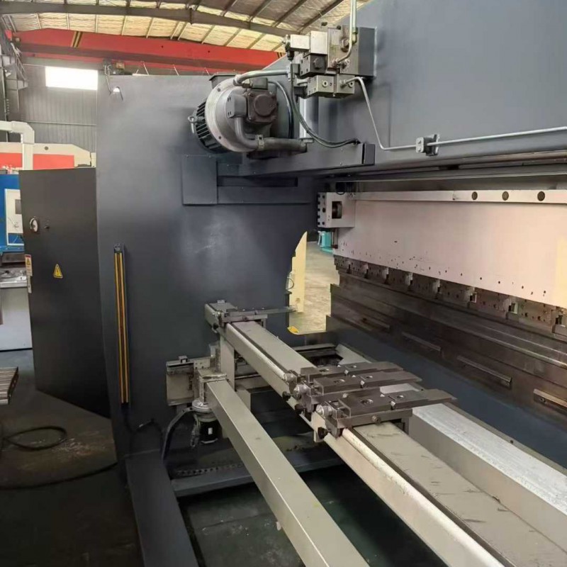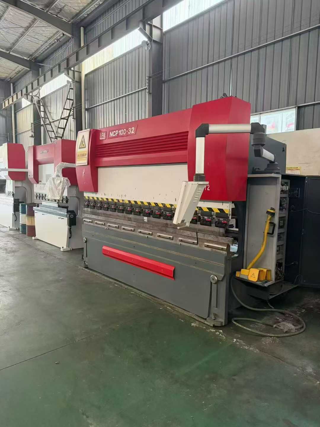 A 100-ton 3200 servo-hydraulic CNC bending machine with 4+1 axes and CT12 system.