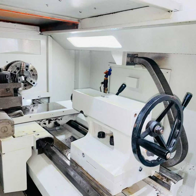 SK50P/1000 CNC lathe, equipped with a 10-inch hydraulic chuck, three-speed internal frequency conversion, the latest model of the Guangshu 980TDi bus absolute value system, original through-hole Ø82 large diameter.