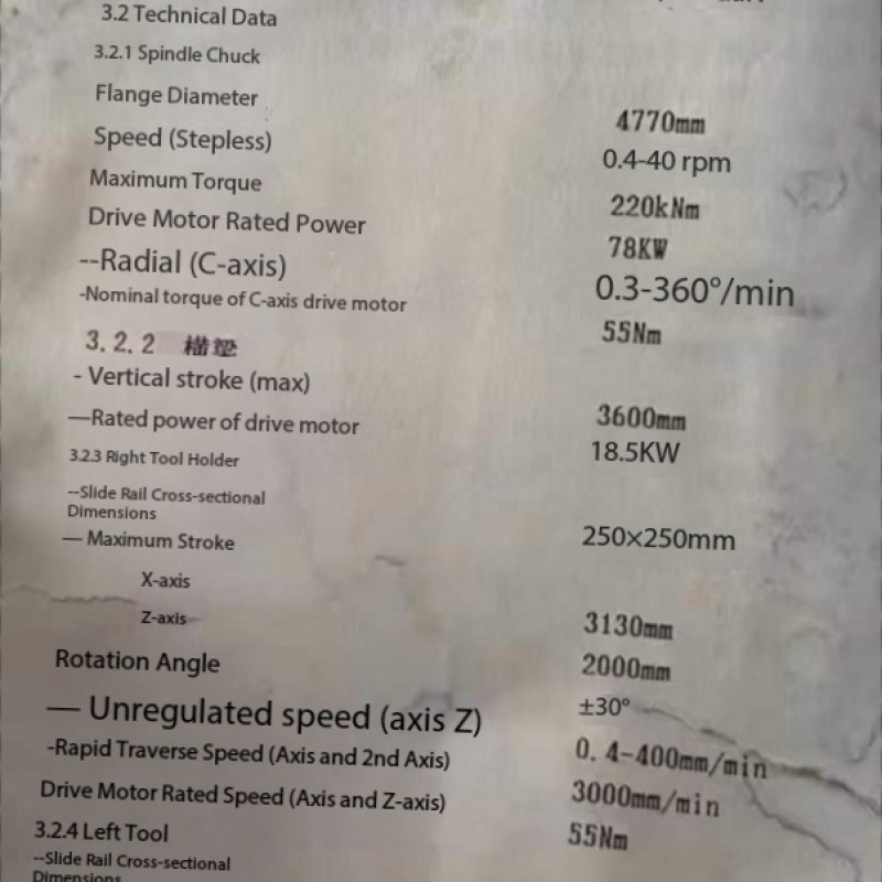 Romanian 5.5-meter CNC lathe-milling machine, height 4 meters, chuck 4.7 meters, load capacity 100 tons.