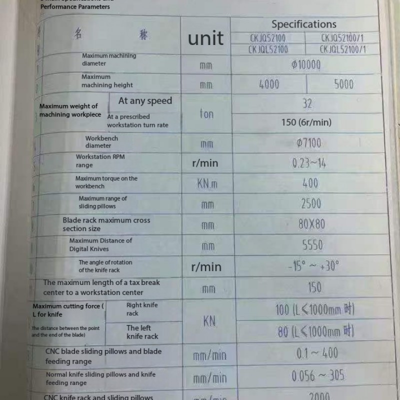 10-meter vertical lathe Wuzhong CKJQ52100 CNC double-column vertical lathe. Chuck 7.1 meters. Processing height: 4 meters. Processing diameter: 10 meters. The workbench can support a load of 150T. Operating system: Siemens 802D.