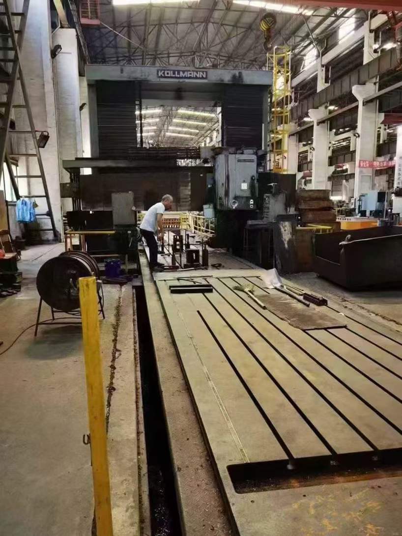 10-meter vertical lathe Wuzhong CKJQ52100 CNC double-column vertical lathe. Chuck 7.1 meters. Processing height: 4 meters. Processing diameter: 10 meters. The workbench can support a load of 150T. Operating system: Siemens 802D.