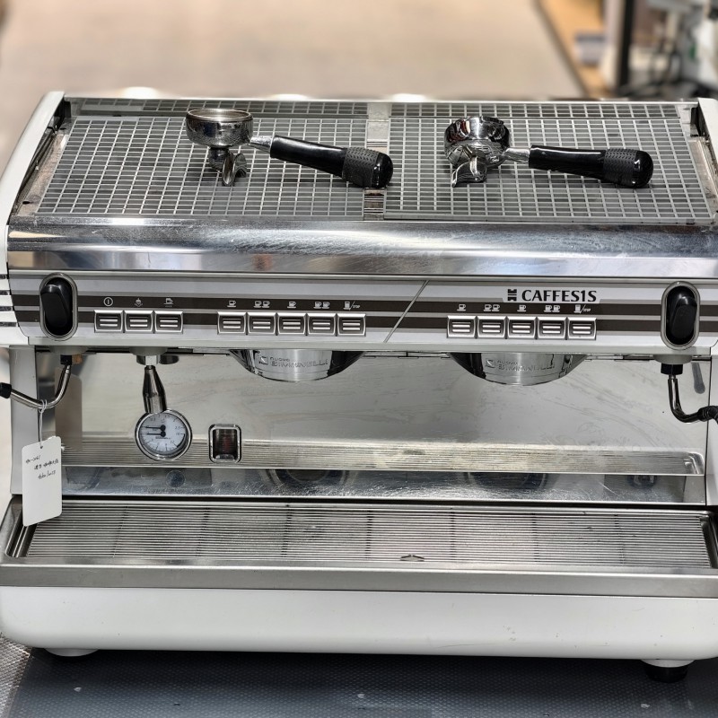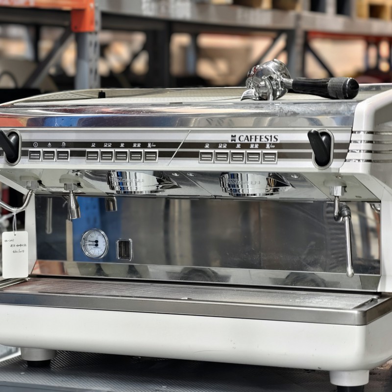 The Legendary Coffee Machine of 2025. Three boilers, rotating pumps. Saturated head. Features a small screen.