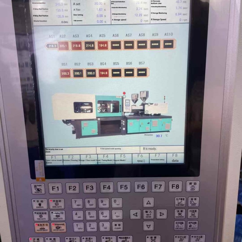 FANUC S-2000I100B fully electric injection molding machine. Fire rate: 330 mm/s. Screw diameter: 26mm Die bottom dimension: 460mm.