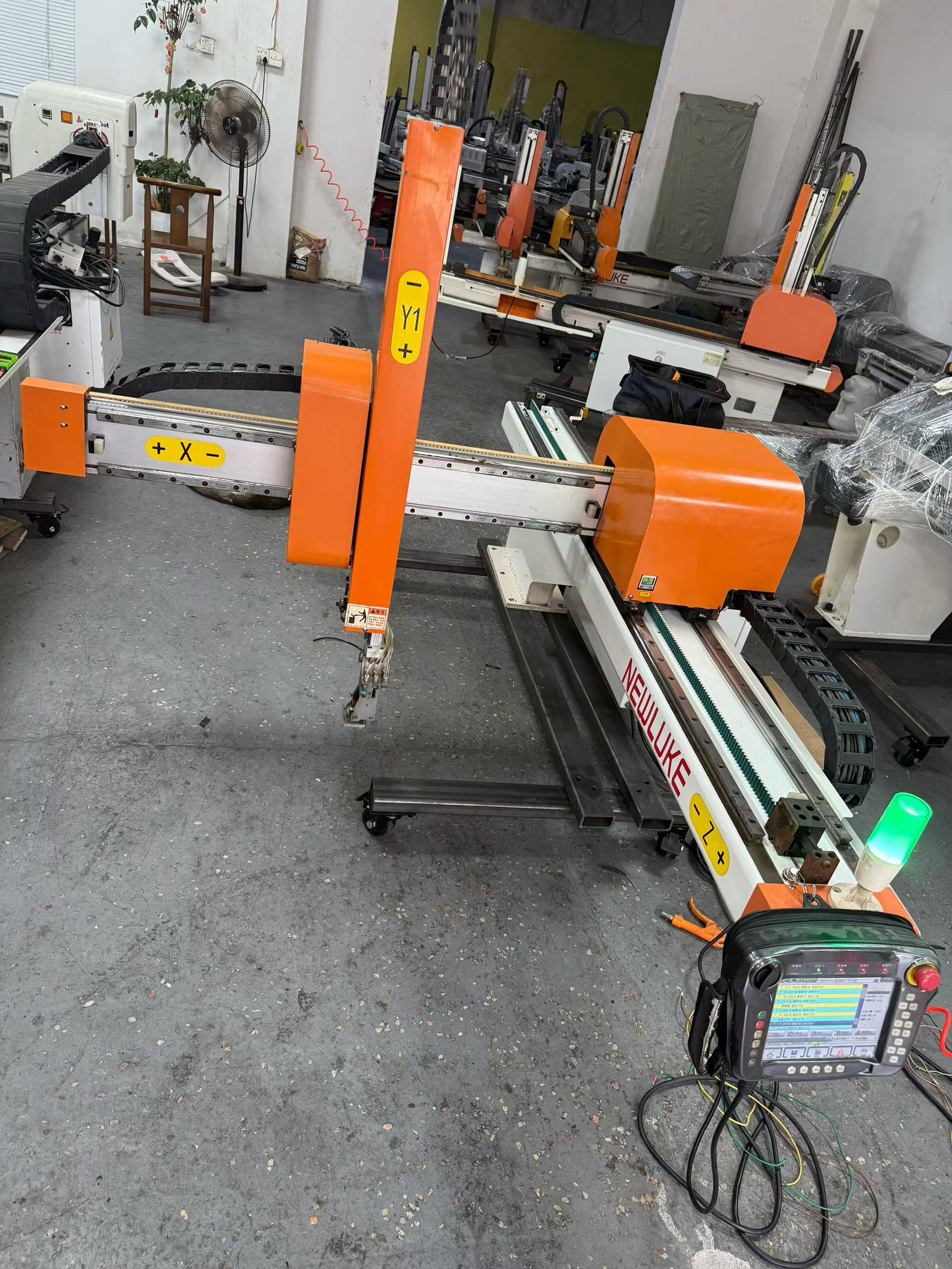 Multiple high-speed machines with fully loaded configurations. Entire machine equipped with THK guides and Huacheng systems.