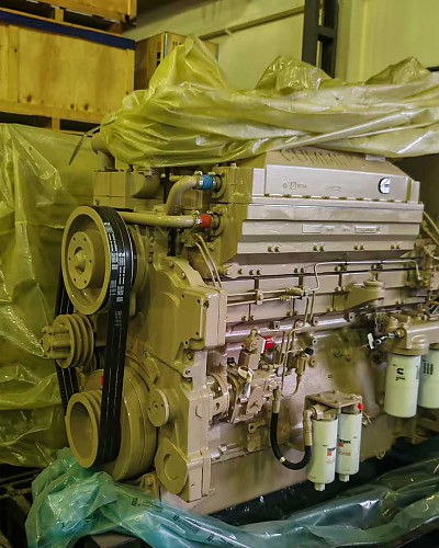 A pile of fully equipped and warranty-covered American Caterpillar CAT35 series ship engines has been loaded into storage.