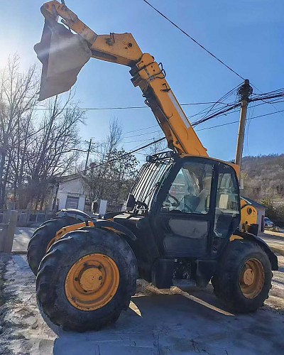 JCB535-95 Telescopic Arm Forklift Truck. Lifting height of 9.5 meters, maximum load capacity of 3.5 tons. Three-section arm, four-wheel drive, four-wheel steering. Perkins engine.