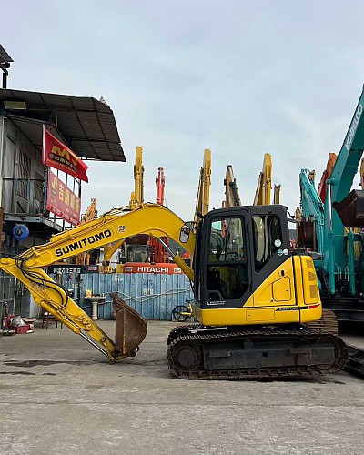 Sumitomo 75 with extended arm. In the shower. Actual condition as of end of 2015: 4040h. Includes barrel and clamp tube.