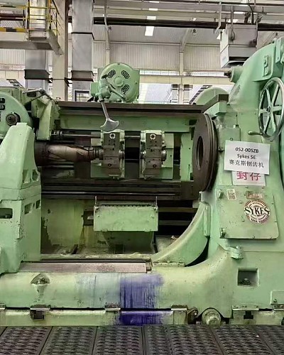 A German Sis 12.5-meter vertical lathe with a chucking table of 8 meters, capable of supporting a load of 205 tons and standing 5 meters tall.